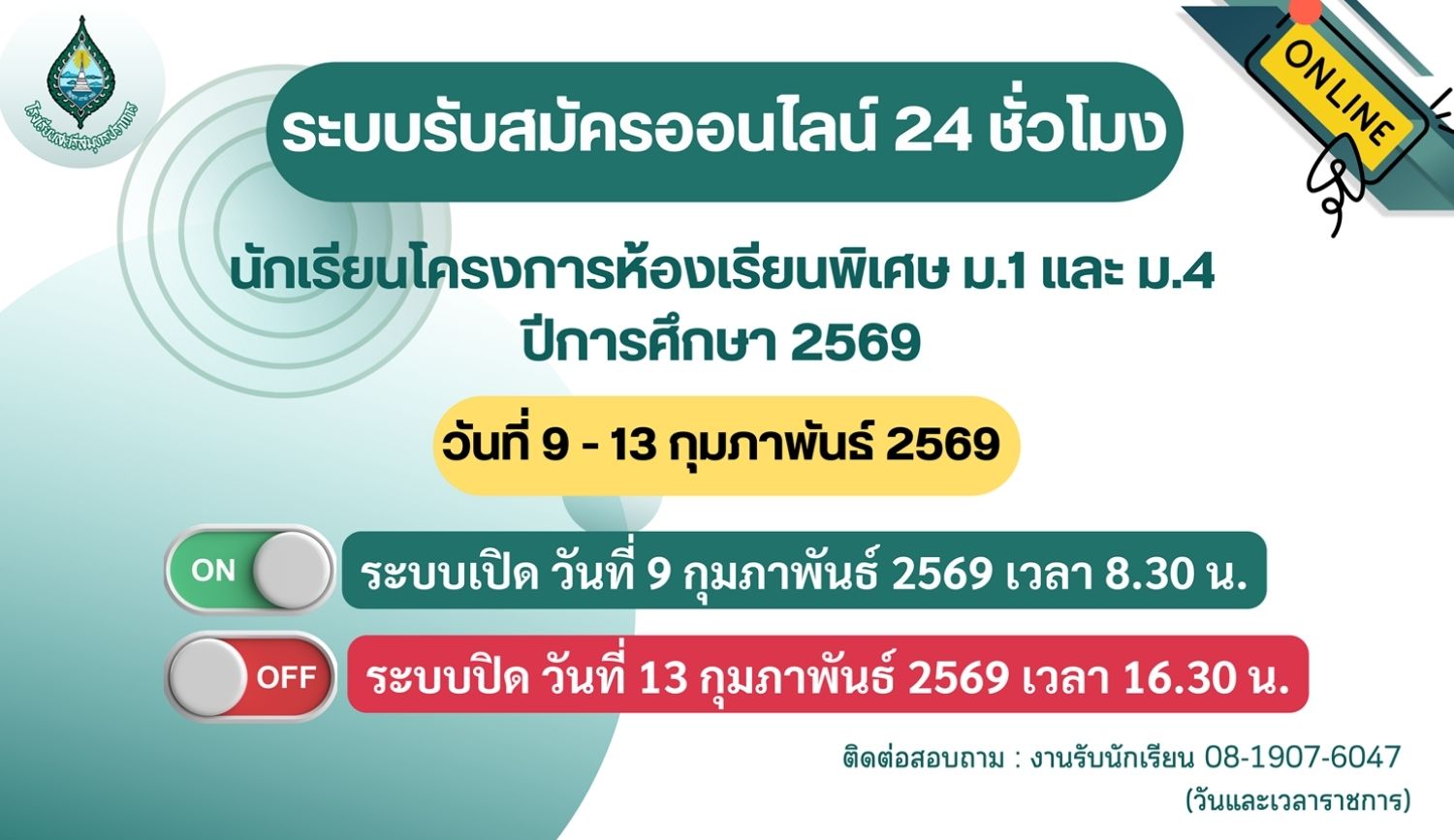 ระบบรับสมัครสอบคัดเลือกนักเรียนโครงการห้องเรียนพิเศษ ระดับชั้น ม. 1 และ ม.4 ปีการศึกษา 2569