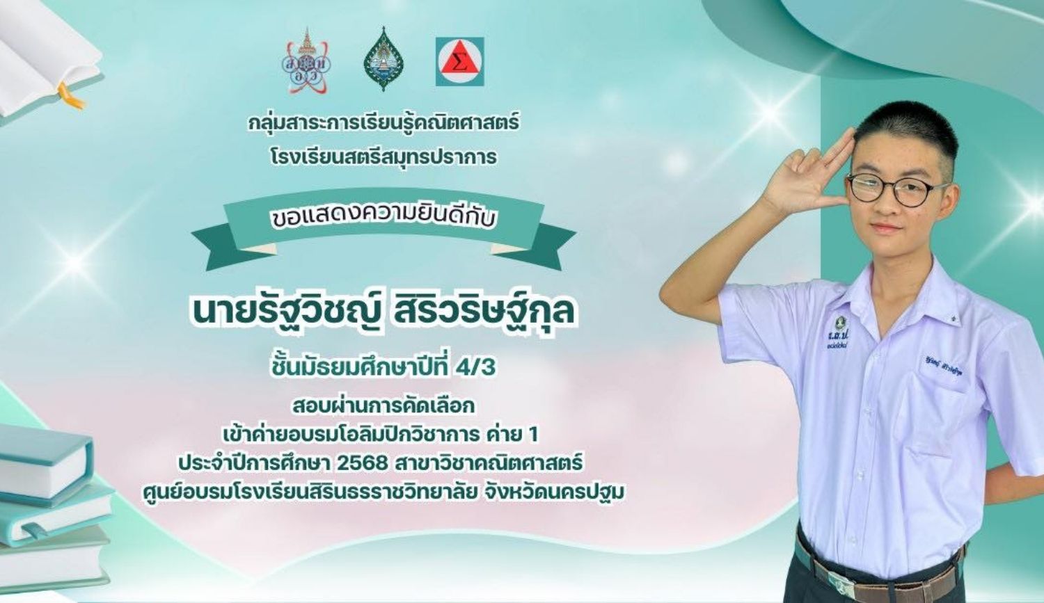 โรงเรียนสตรีสมุทรปราการ ขอแสดงความยินดีกับนักเรียนที่สอบผ่านการคัดเลือกเข้าค่ายอบรมโอลิมปิกวิชาการ ค่าย 1 ปีการศึกษา 2568 สาขาวิชาคณิตศาสตร์