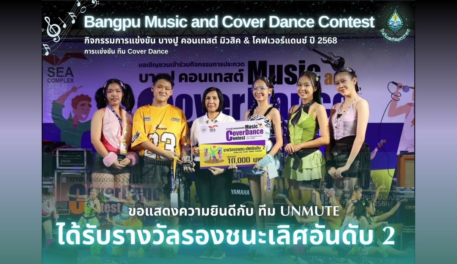 ขอแสดงความยินดีกับ ทีม UNMUTE ได้รับรางวัลรองชนะเลิศ อันดับ 2 ในการแข่งขัน Cover Dace กิจกรรมการประกวด Bangpu Music and Cover Dance Contest