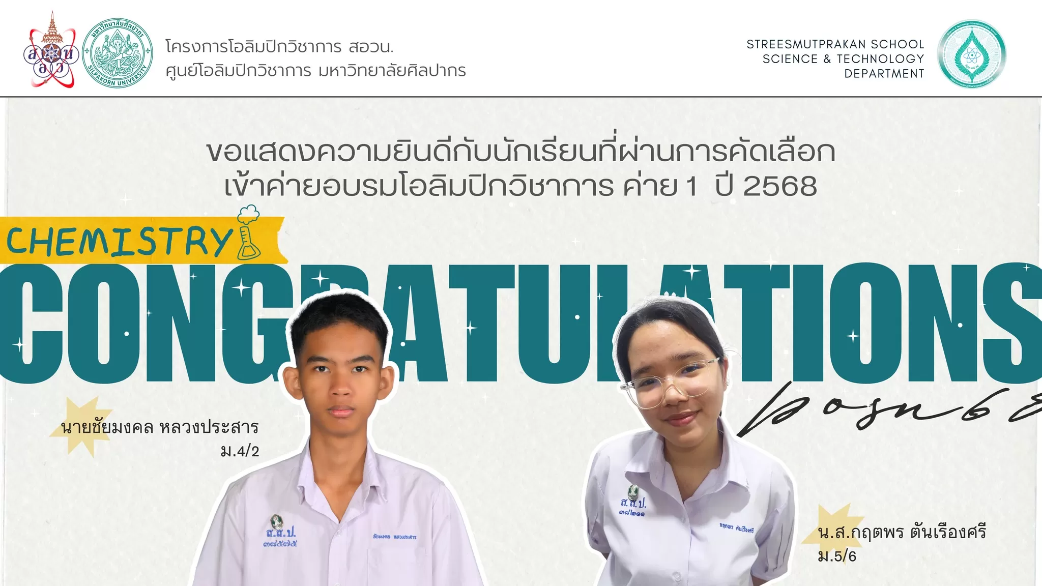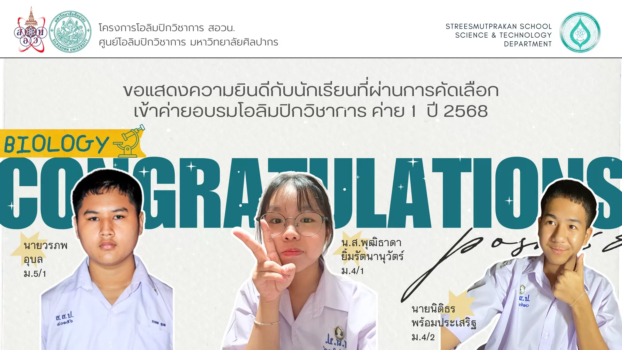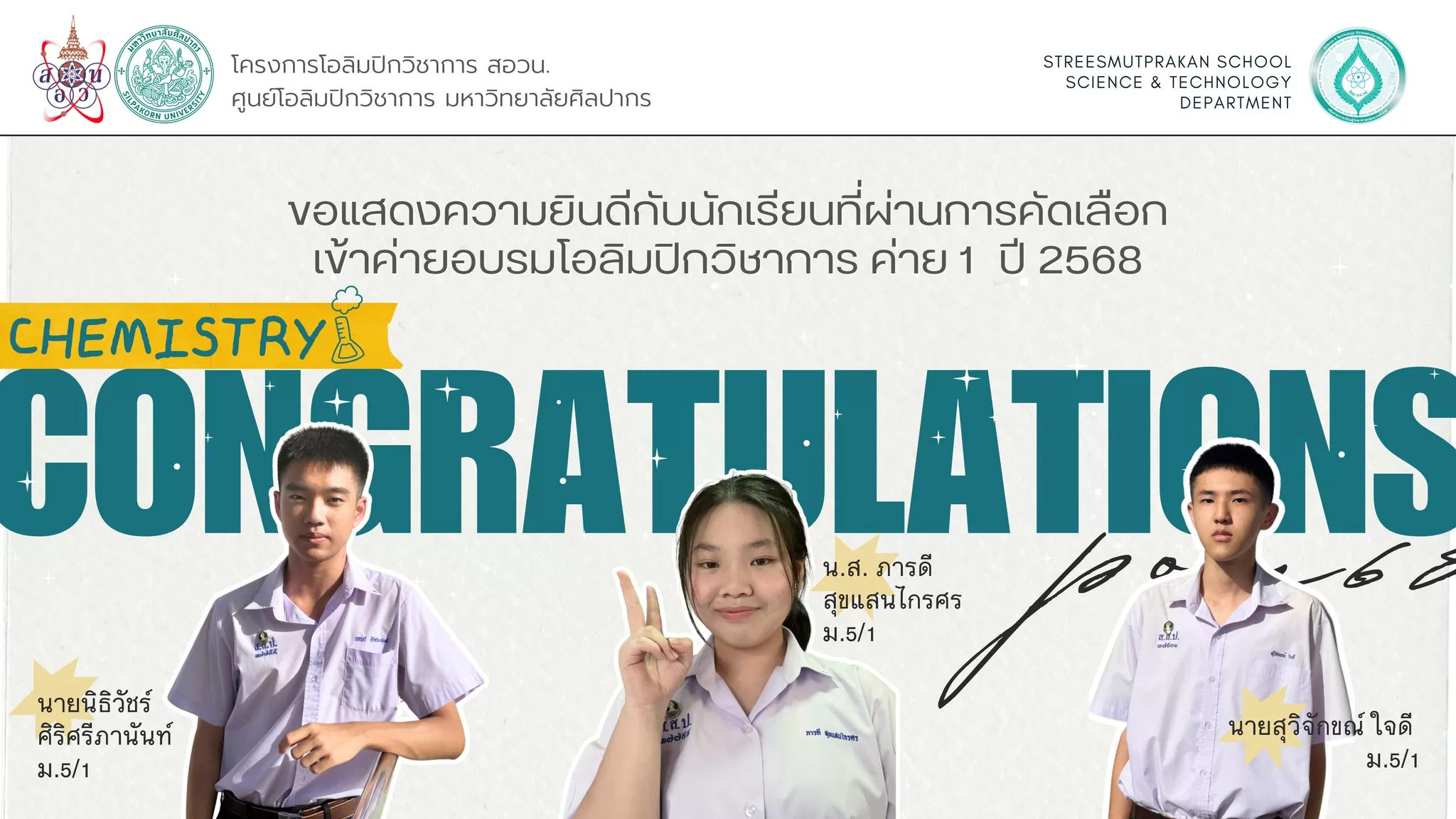 โรงเรียนสตรีสมุทรปราการ ขอแสดงความยินดีกับนักเรียนที่สอบผ่านการคัดเลือกเข้าค่ายอบรมโอลิมปิกวิชาการ ค่าย 1 ปีการศึกษา 2568
